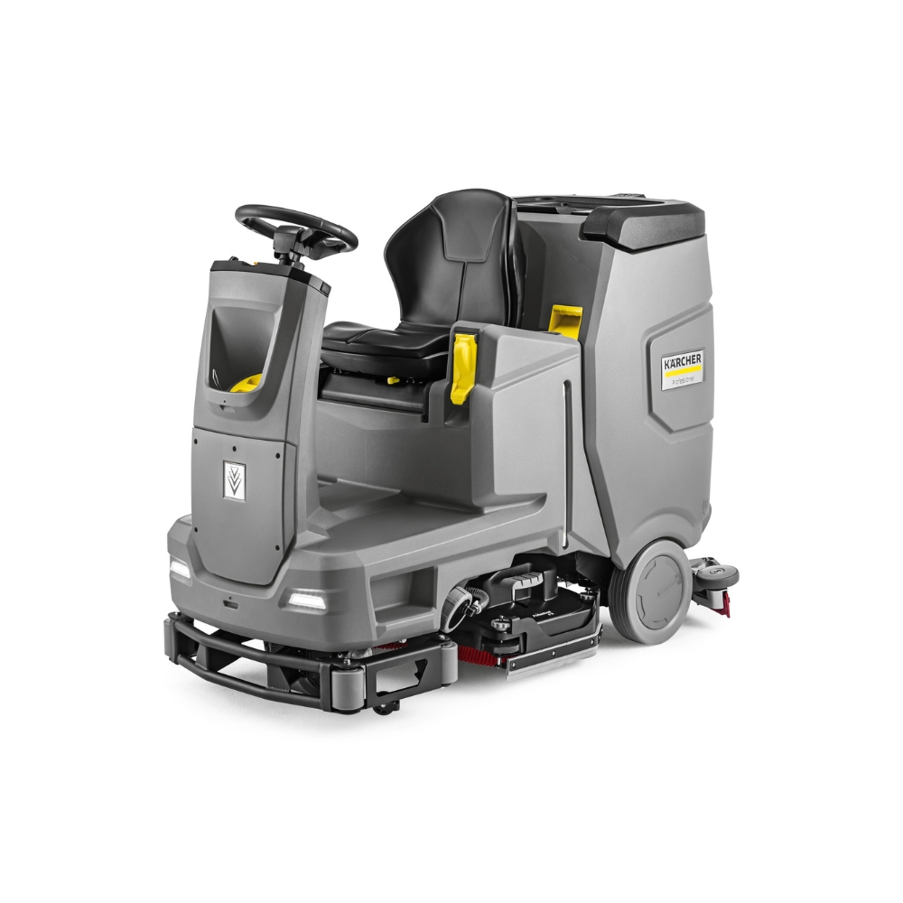 Top cleaning results, resource-conserving systems, simple operation and a high level of user-friendliness: our ride-on scrubber dryer B 110 R convinces in all areas. Driven by a powerful 170 Ah battery, which is conveniently charged via the built-in battery charger, 2 disc brushes with 75 centimetre working width, the speed-dependent water dosing and the DOSE cleaning agent dosing system ensure high cleaning power with simultaneously low consumption of water and cleaning agents. Colour-coded operating elements, the EASY Operation switch for selecting the cleaning programme and the large, 30-language colour display also ensure very simple operation. The Auto Fill function for the time-saving filling of the fresh water tank and the tank rinsing system for the quick cleaning of the dirty water tank are integrated for maximum user-friendliness. And the machine is equipped with a height-adjustable driver’s seat and visible daytime driving lights for enhanced working comfort and safety.