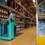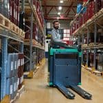 The stand-in power pallet design contains the operator completely within the truck, keeping them protected by the chassis. The stand-in concept also allows for a highly compact footprint. Along with the incredibly tight turning circle, this makes narrower aisle layouts much more feasible.